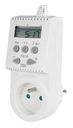 Der Steckdosenthermostat TS10 für Heizstrahler und andere elektrische Heizungen. Der Vorteil ist die Programmierung von bis zu 4 Temperaturänderungen pro Tag.